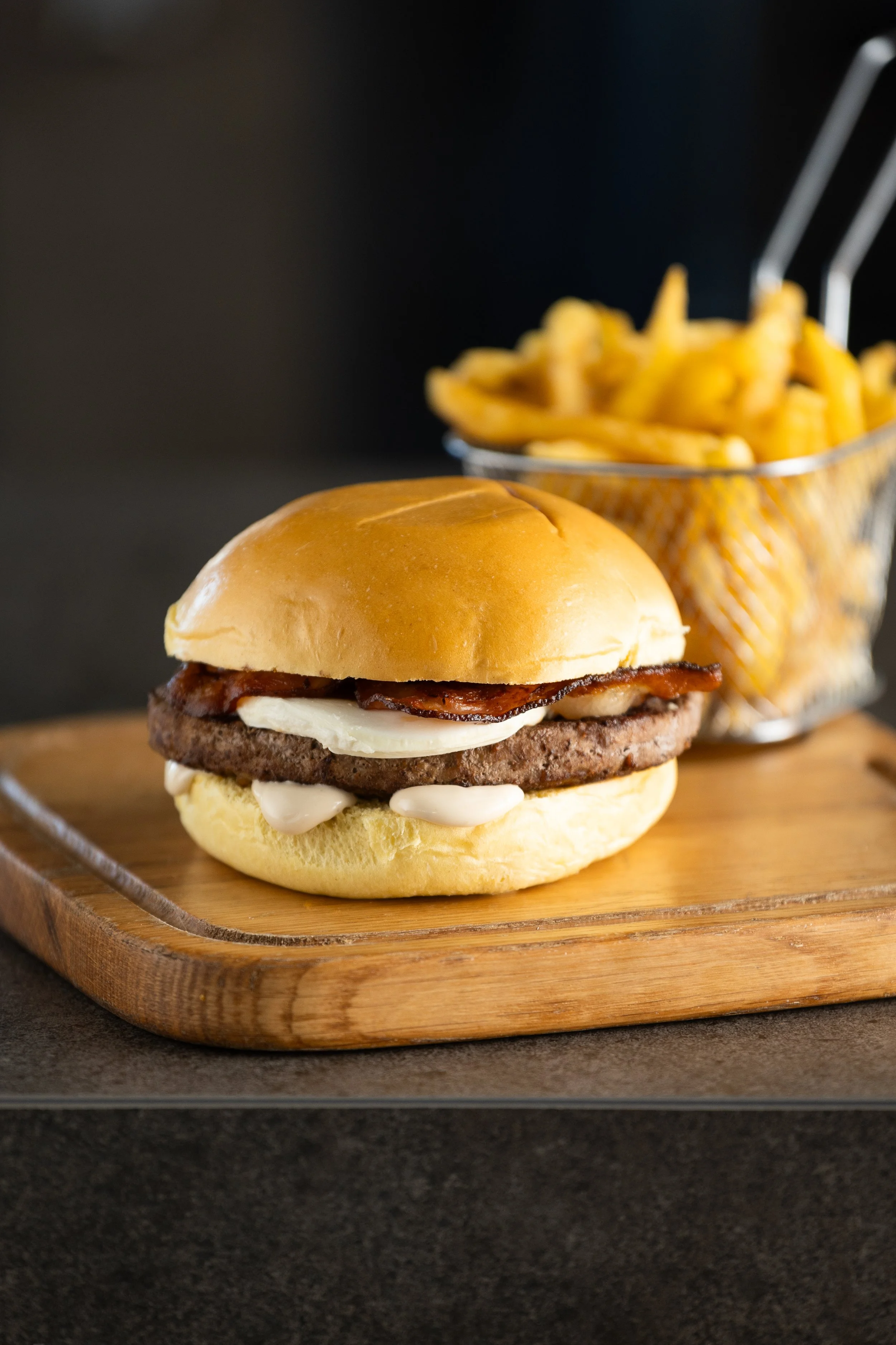125 GR DE CARNE 100% VACUNO, BACON, QUESO DE CABRA Y SALSA MAYO-TRUFA
